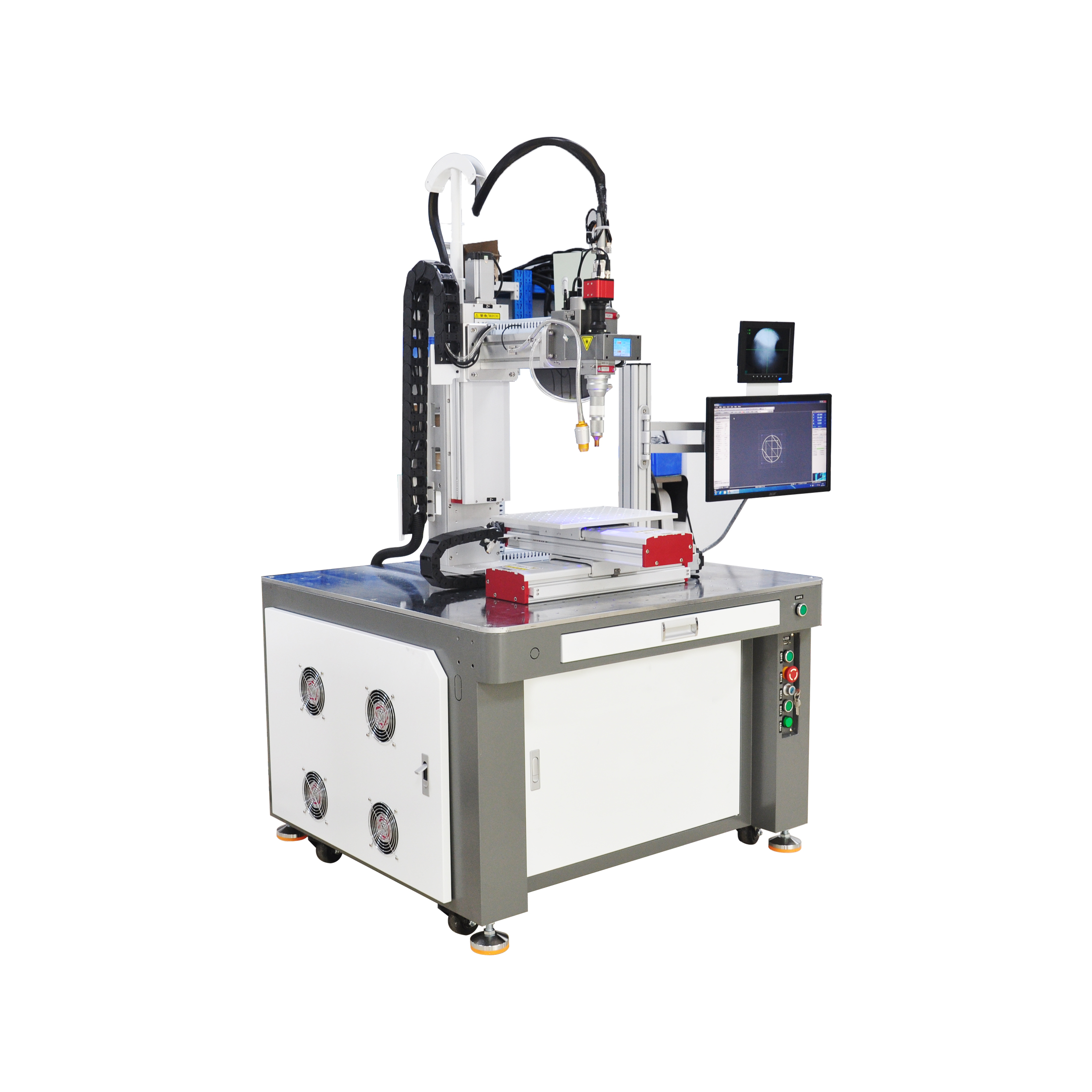2.振鏡掃描頭的組合設計,在加工范圍內實現點焊及縫焊;